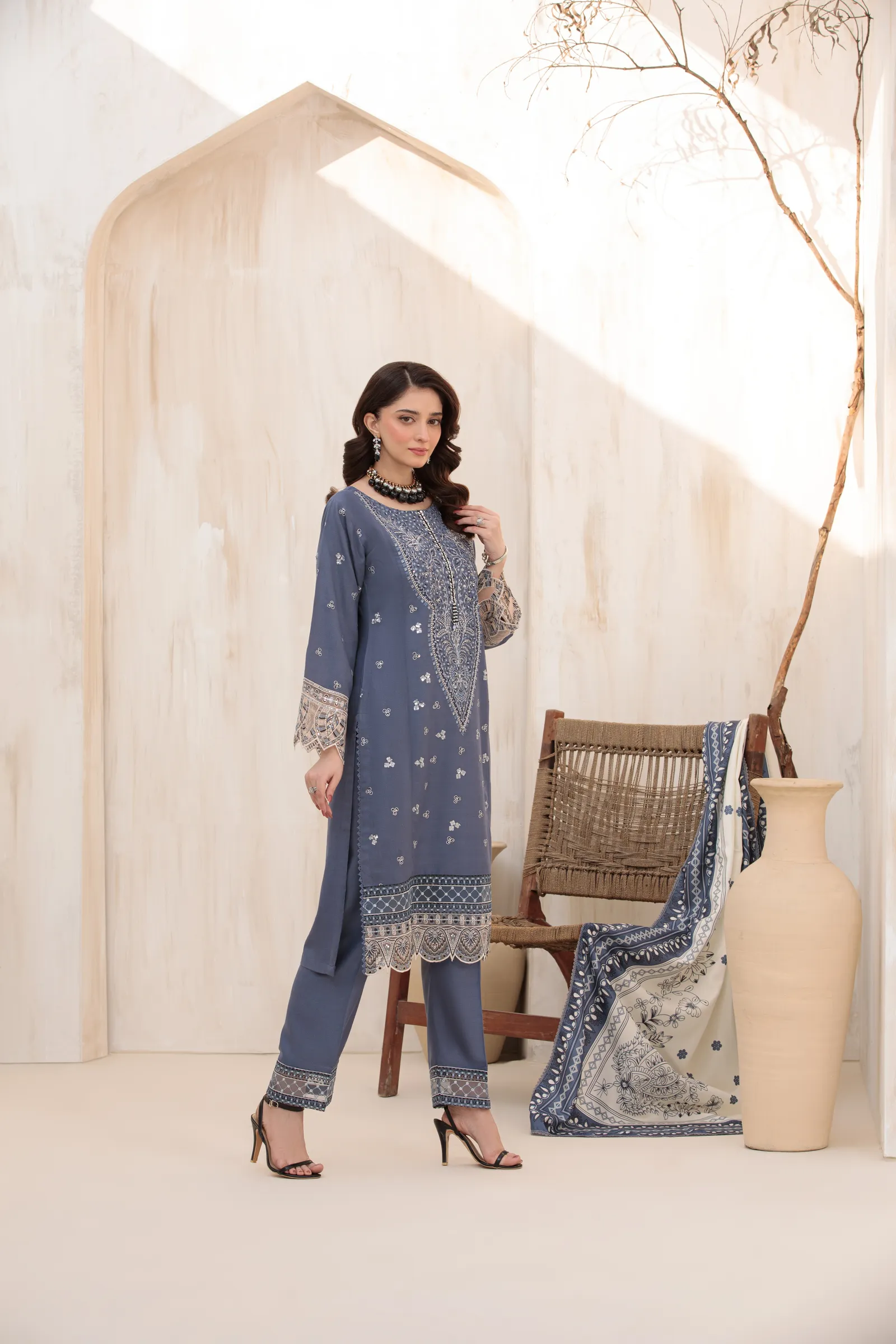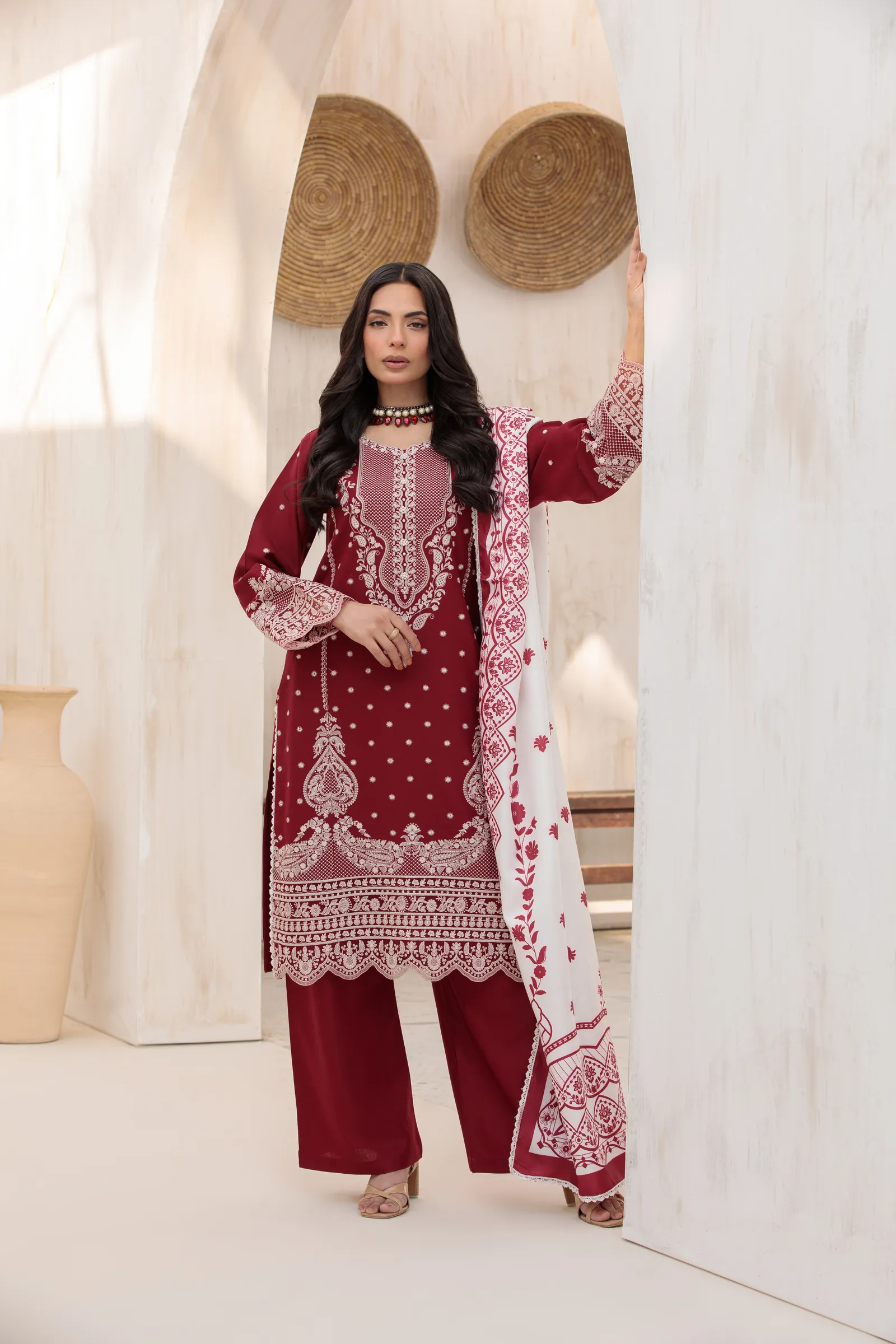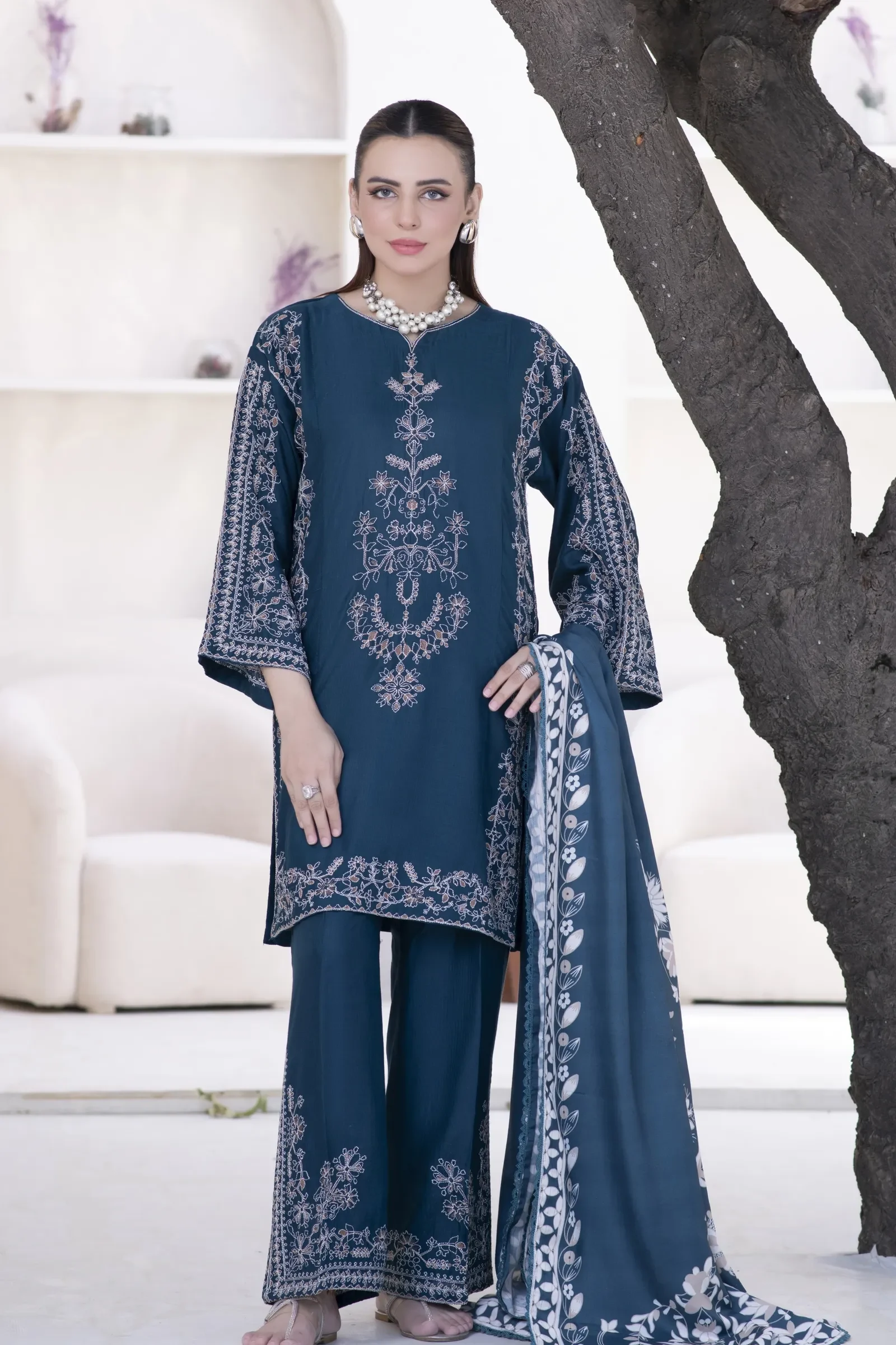 3 Piece Viscos Suit – Embroidered with Shawl (Stitched)