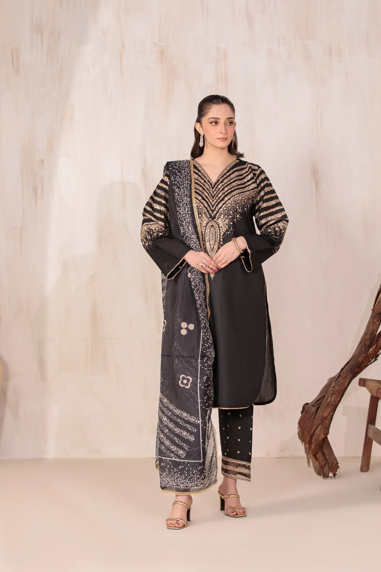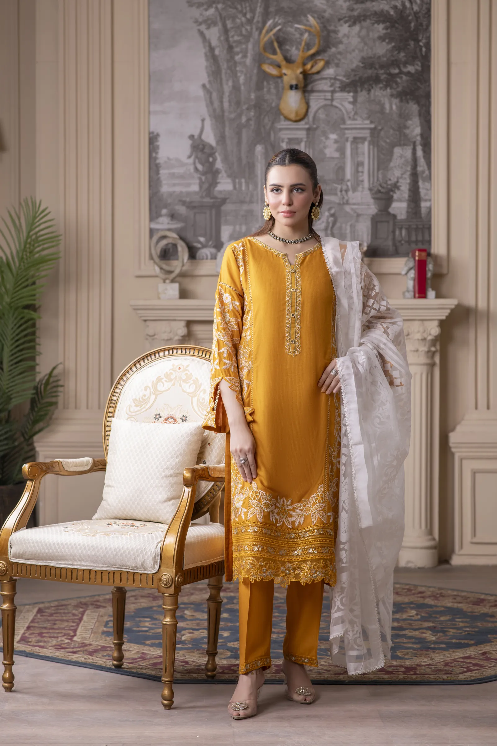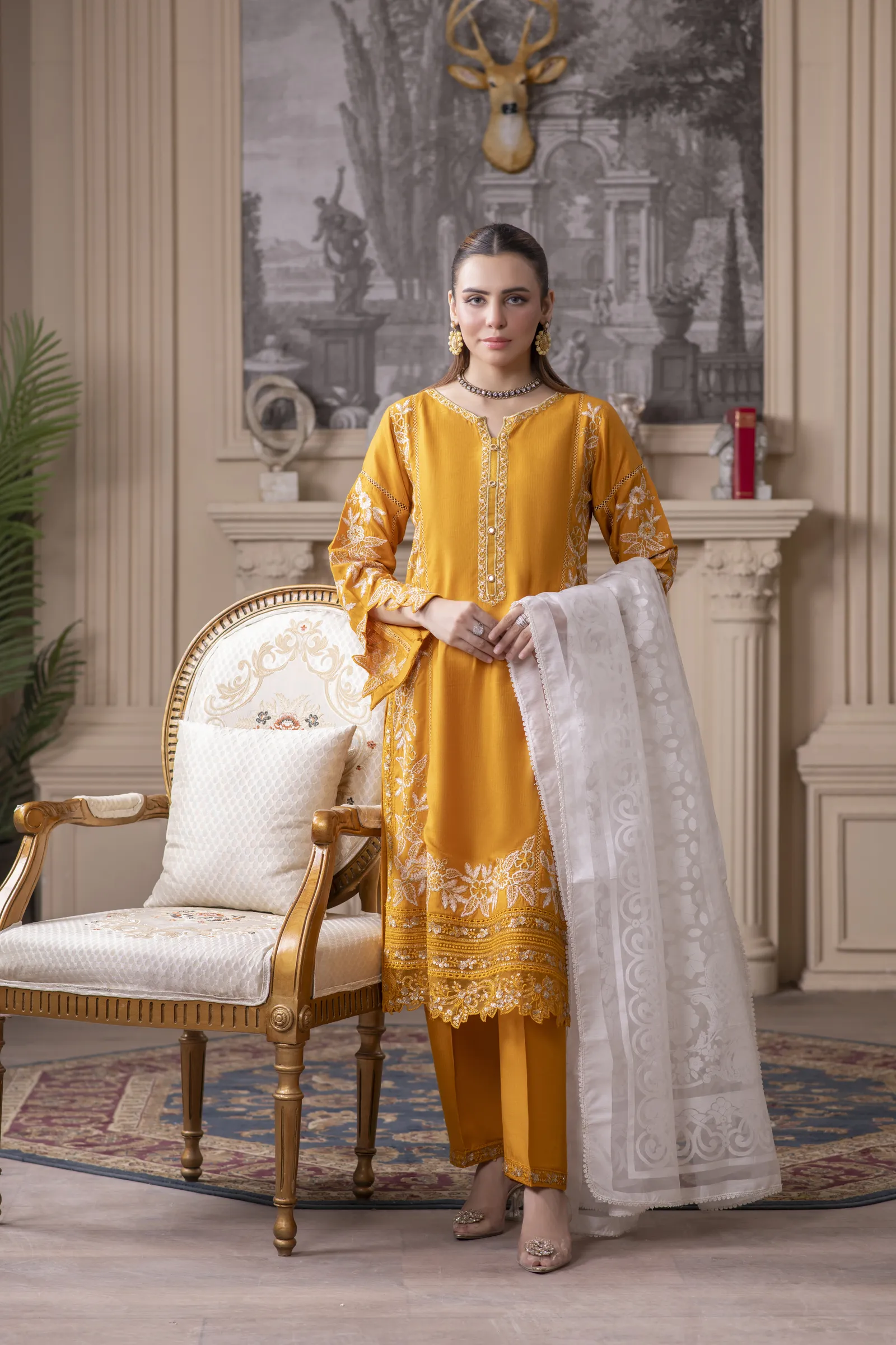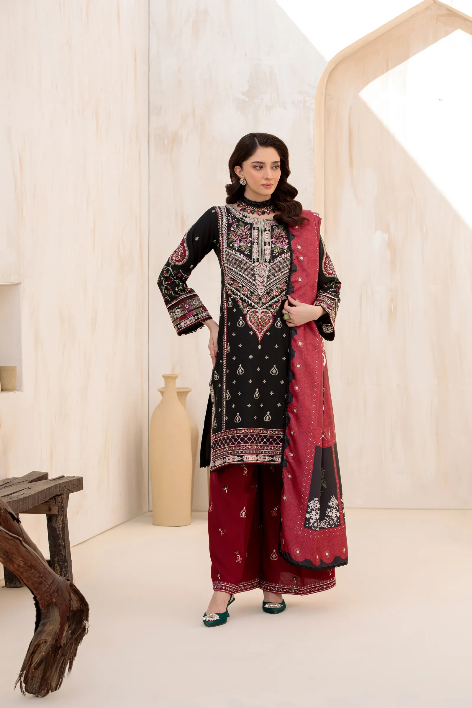3 Piece Viscos Suit – Embroidered with Shawl (Stitched)