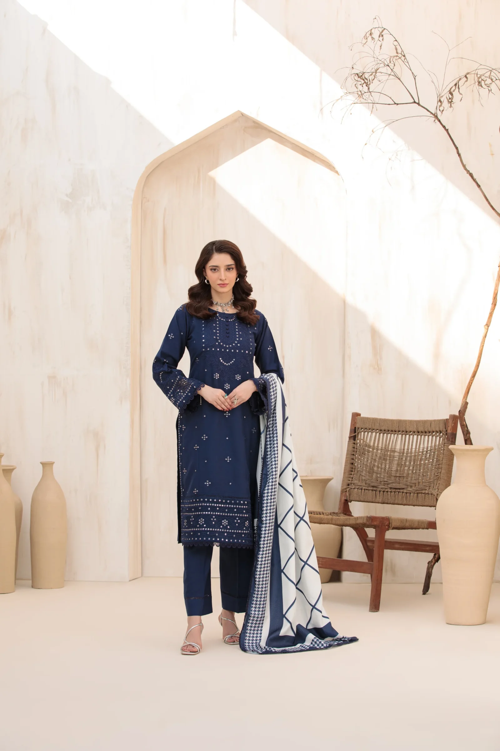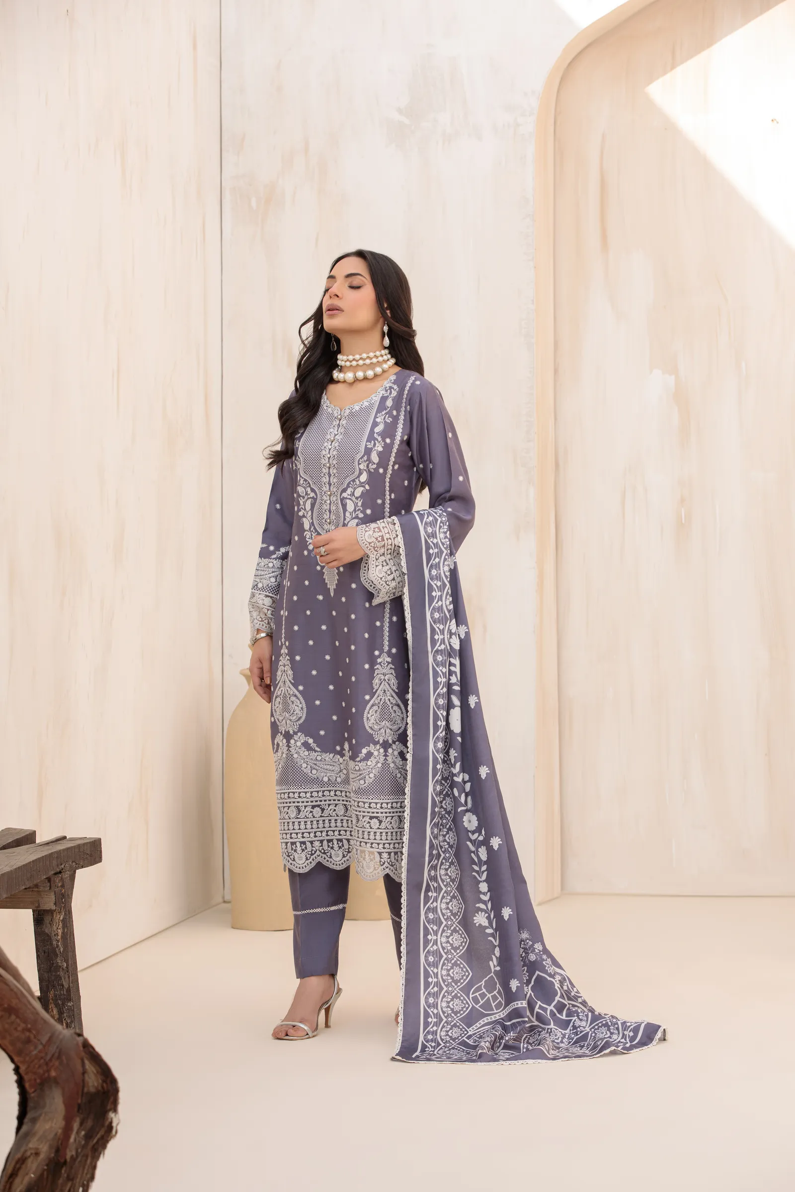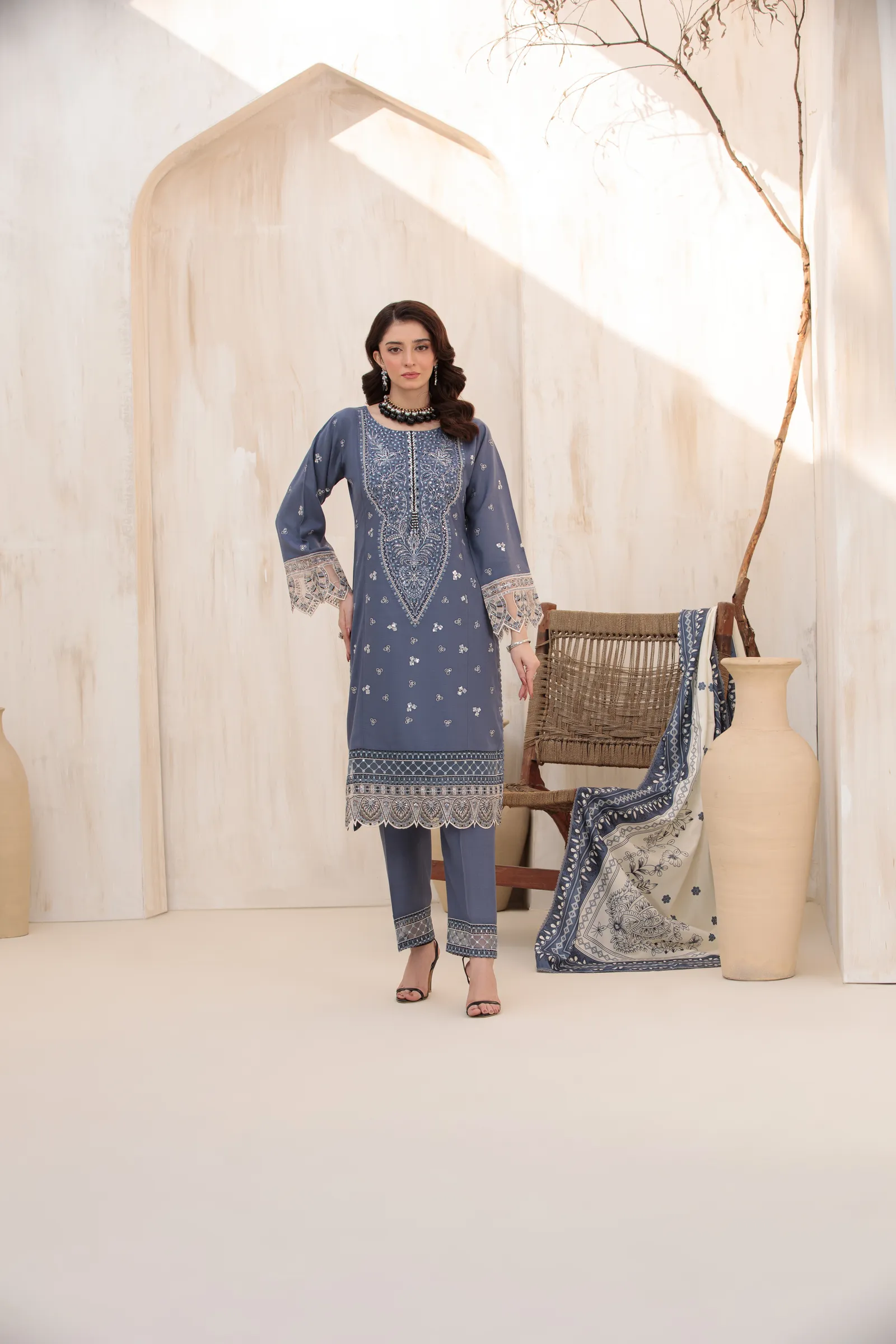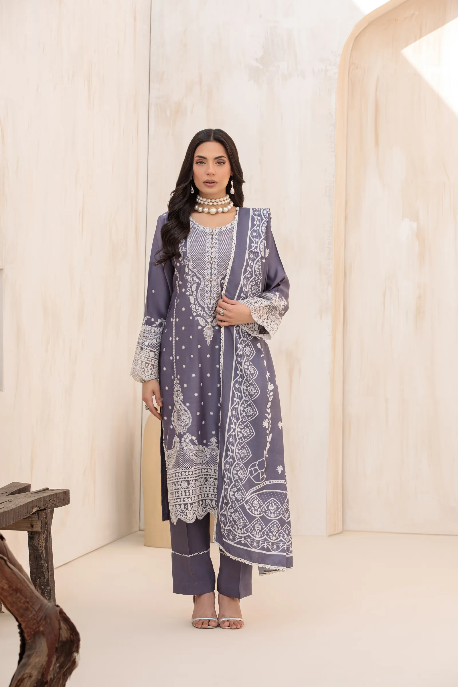 3 Piece Doria Lillen Suit – Embroidered with Shawl (Stitched)