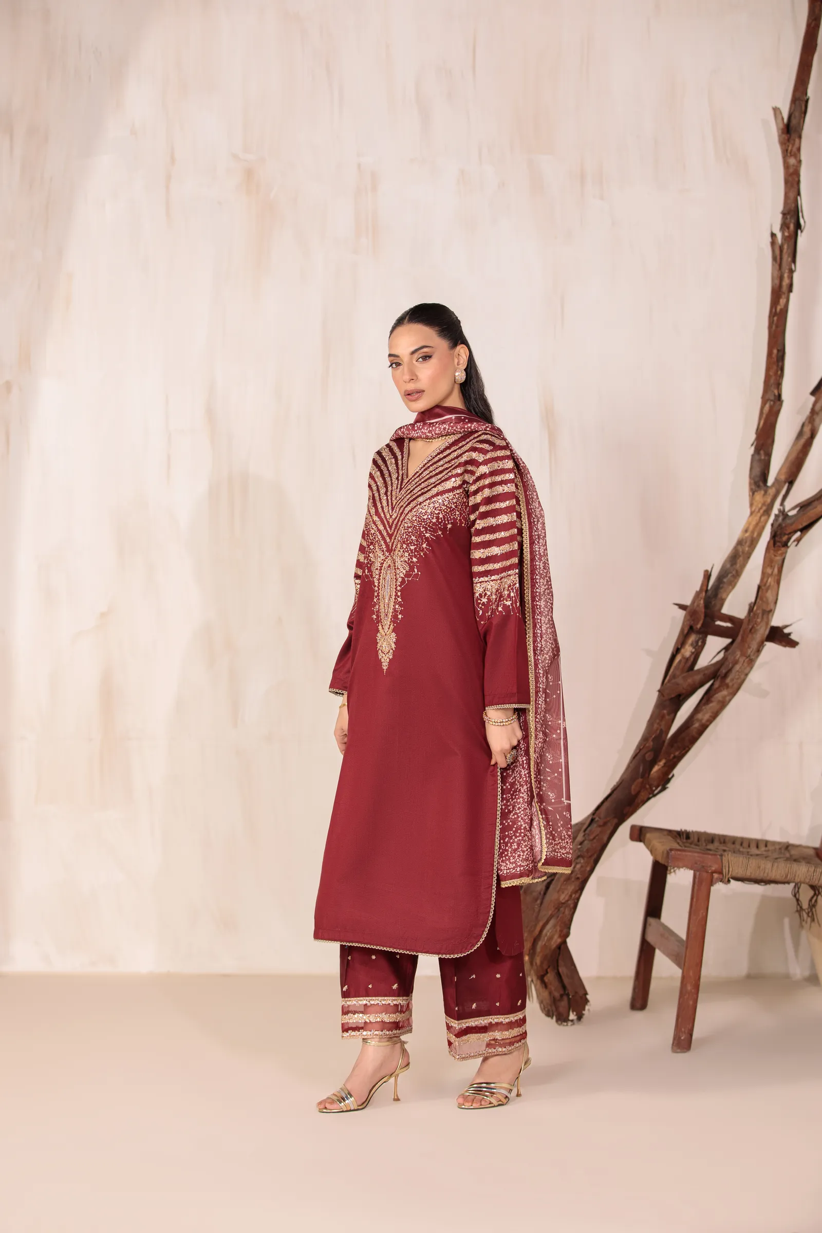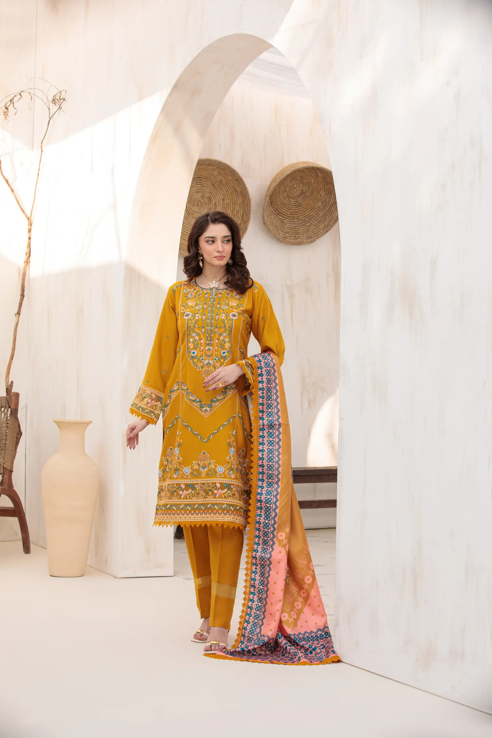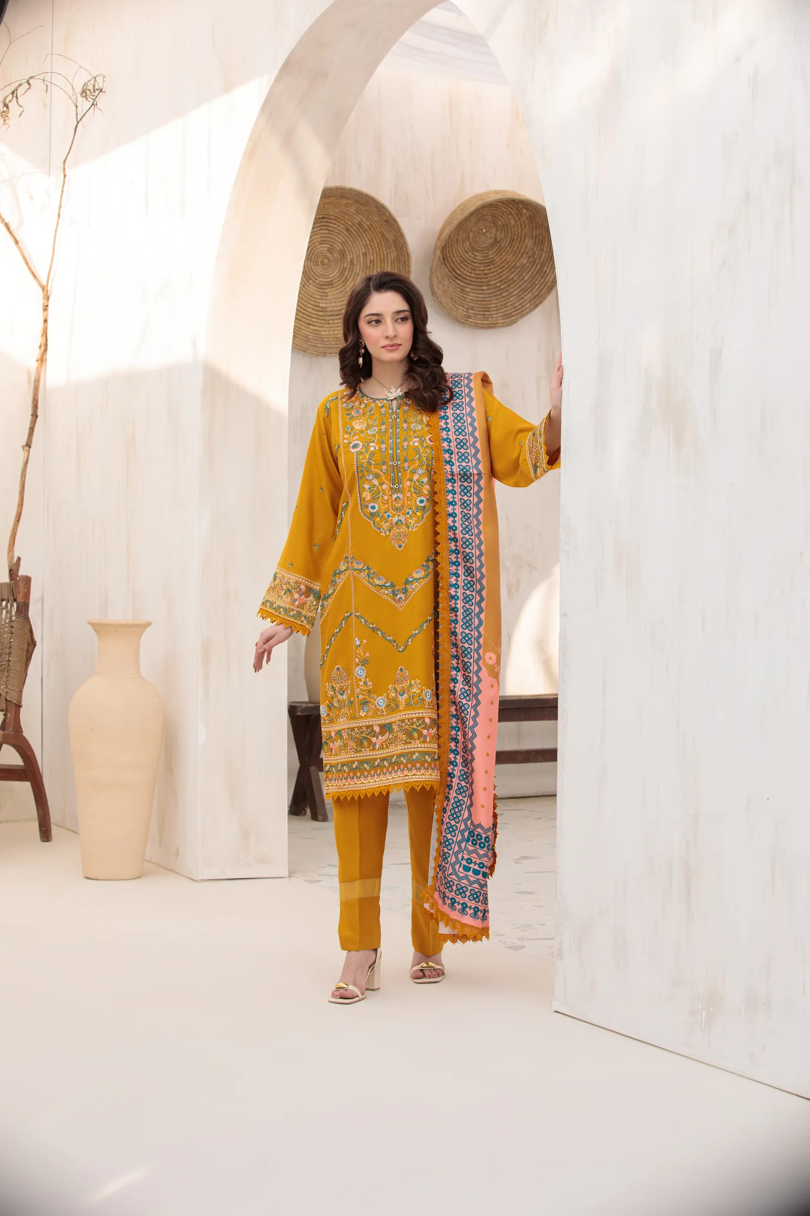 3 Piece Lillen Suit – Embroidered with Shawl (Stitched)