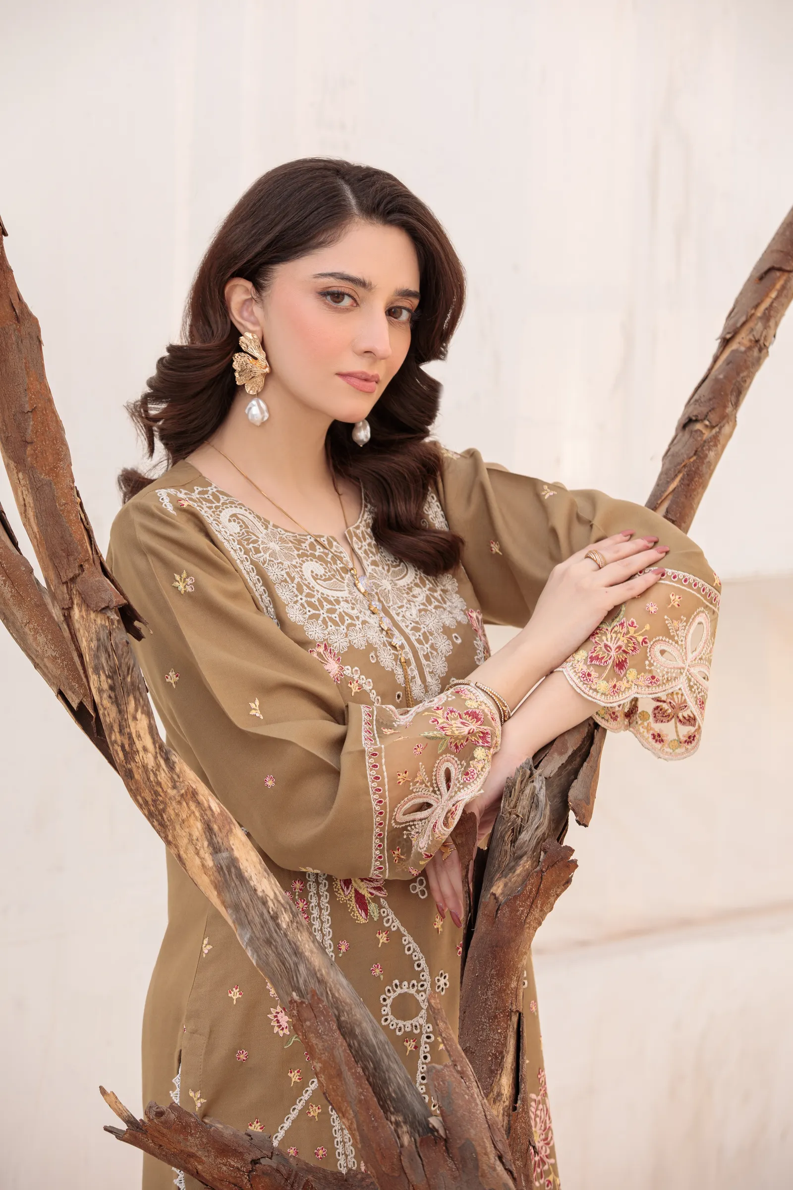 3 Piece Lillen Suit – Embroidered with Shawl (Stitched)