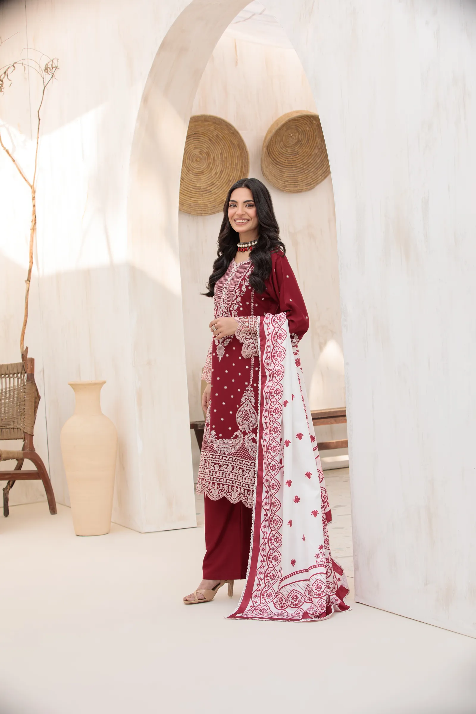 3 Piece Suit – Embroidered with Shawl (Stitched)