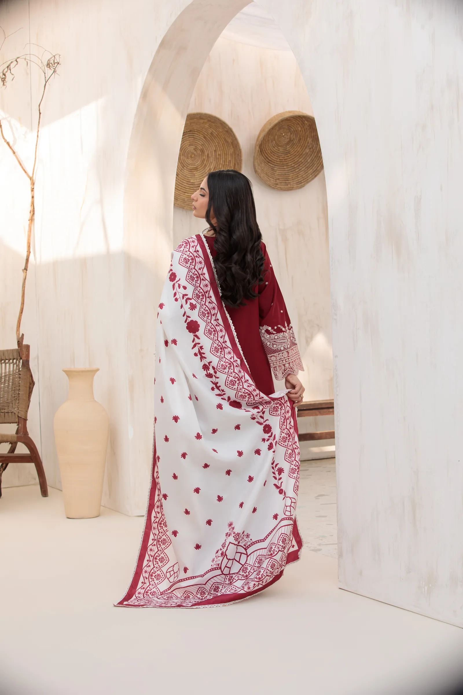 3 Piece Dhanak Suit – Embroidered with Shawl (Stitched)