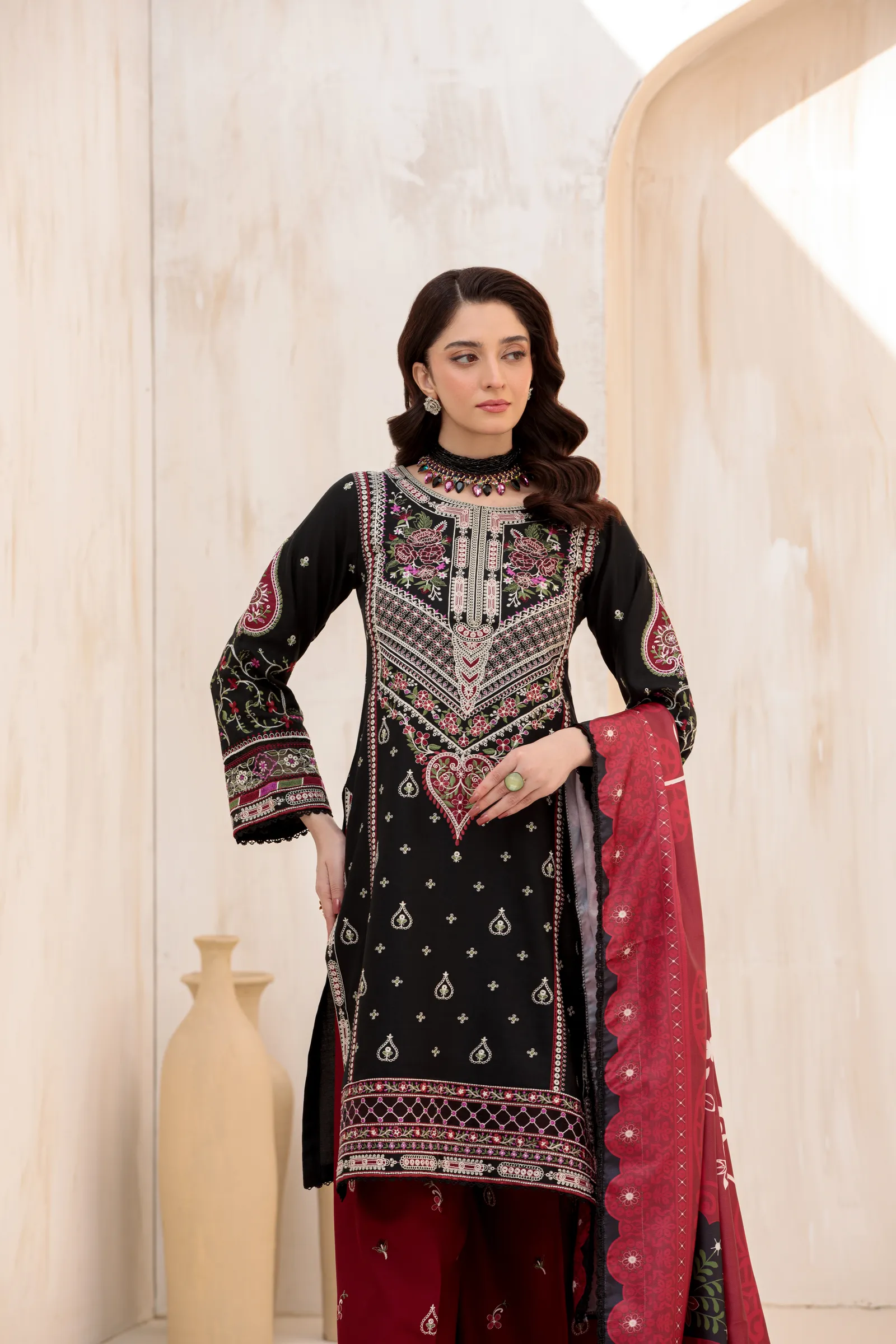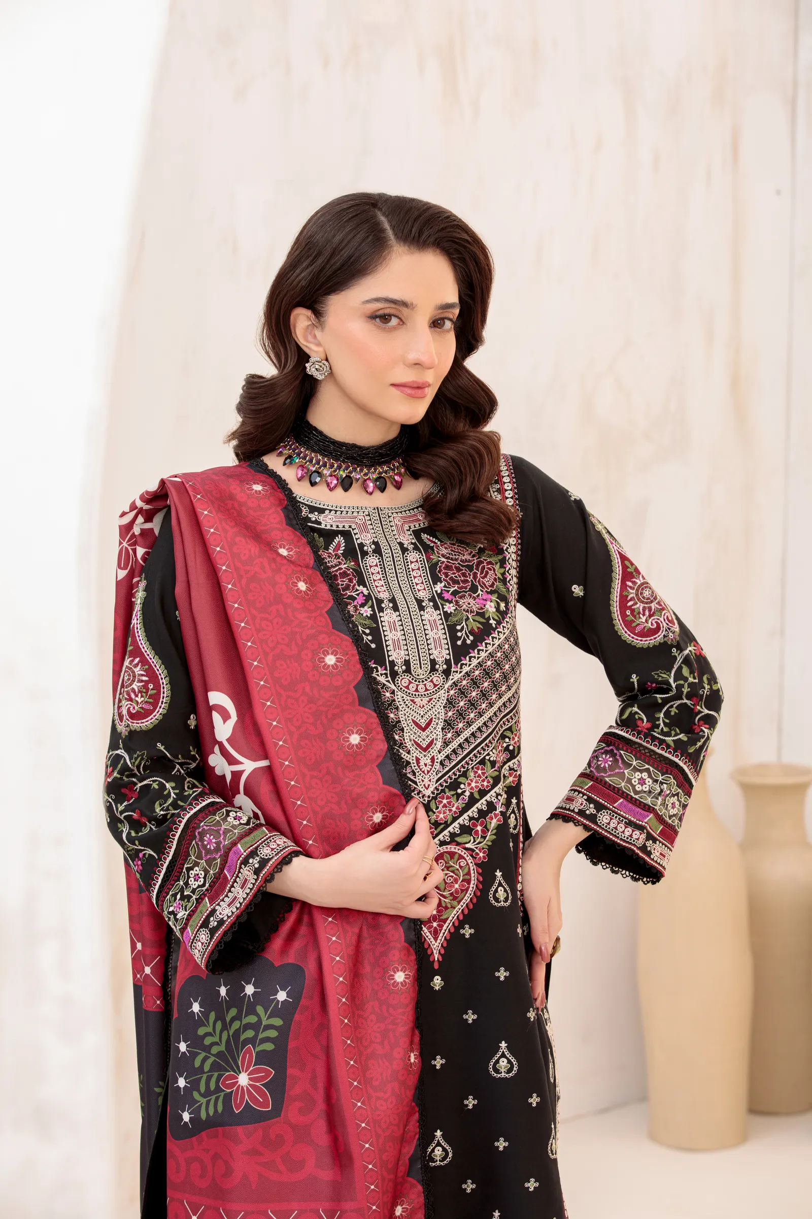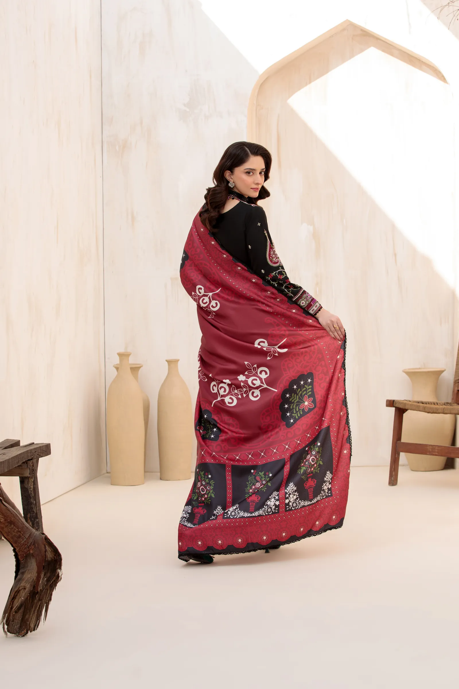 3 Piece Suit – Embroidered with Shawl (Stitched)