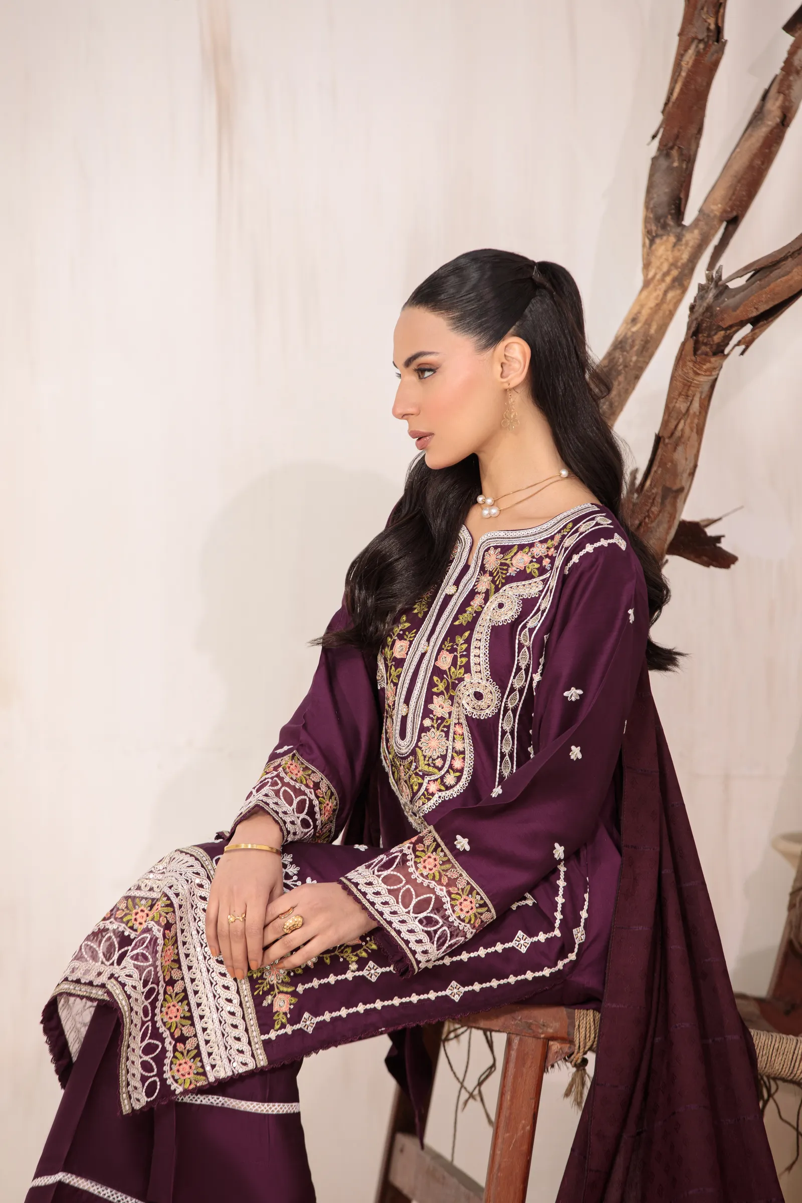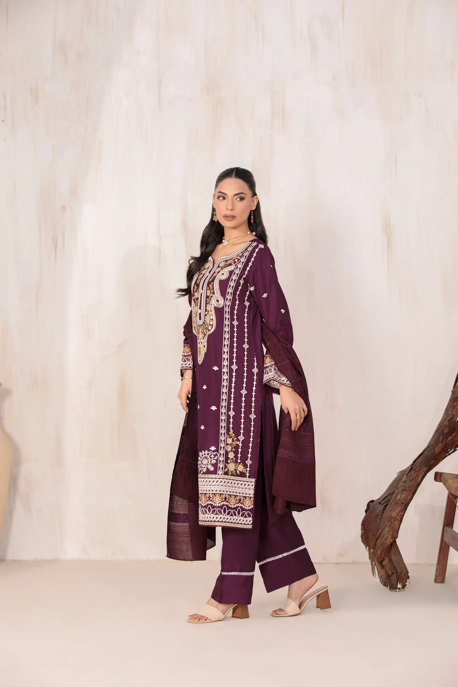 3 Piece Suit – Embroidered with Shawl (Stitched)