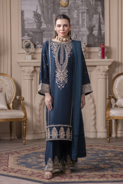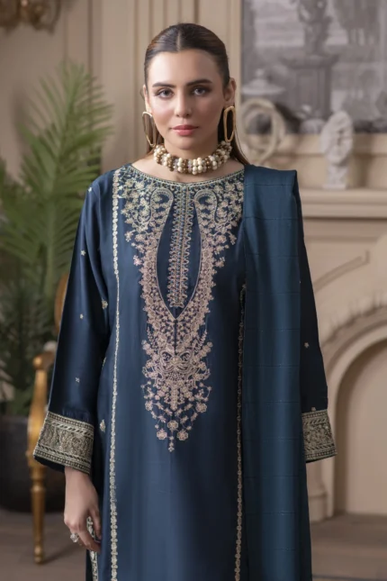 3 Piece Suit – Embroidered with Shawl (Stitched)