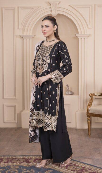 3 Piece Viscos with shawl Suit – Embroidered with Shawl (Stitched)