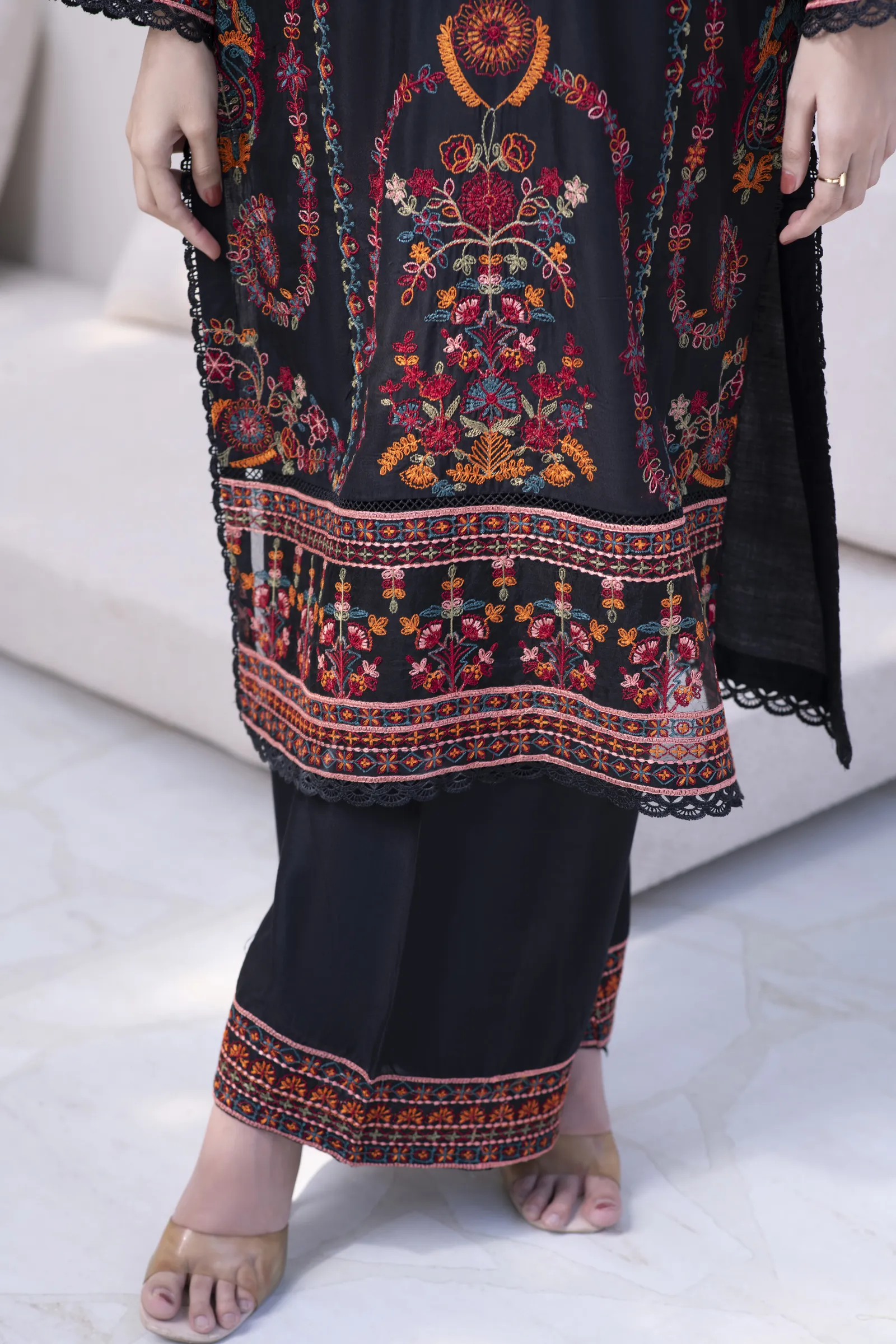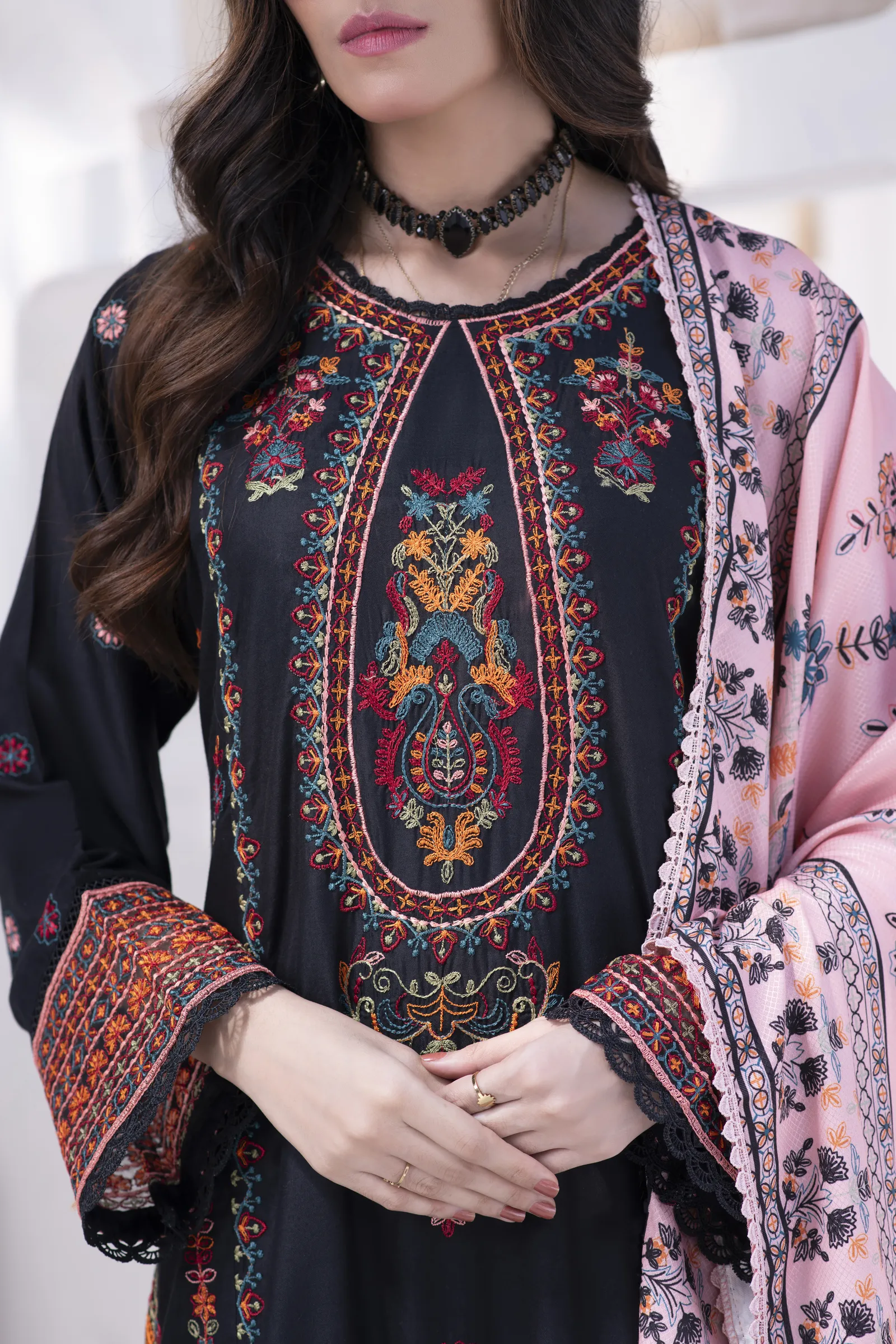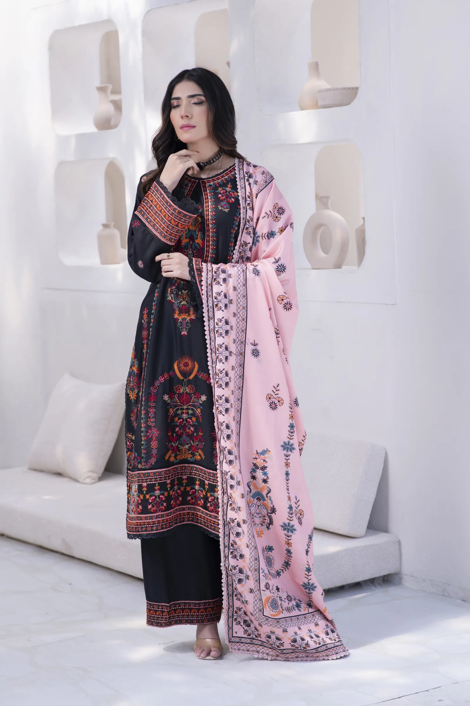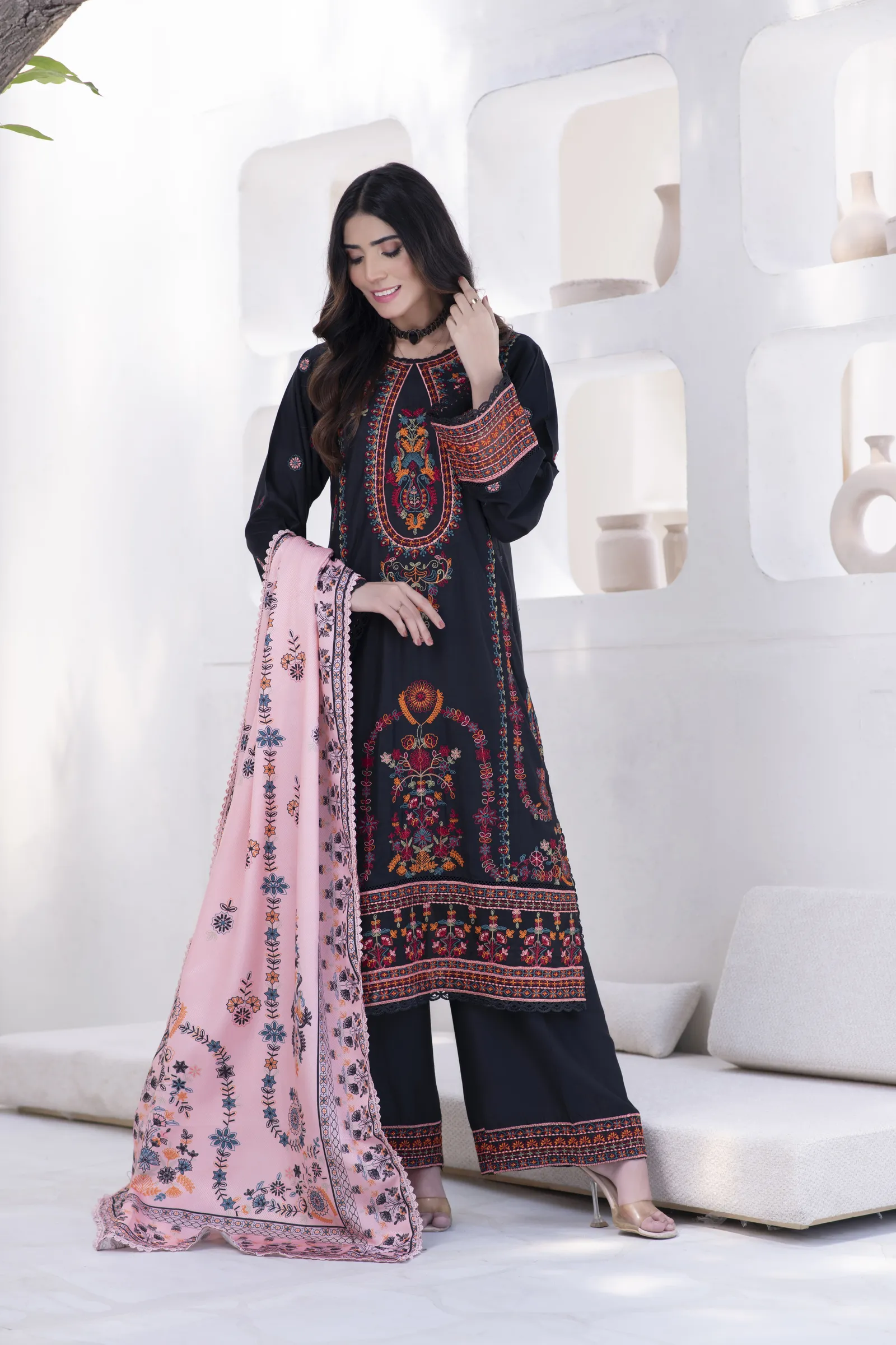 3 Piece Viscos Suit – Embroidered with Shawl (Stitched)