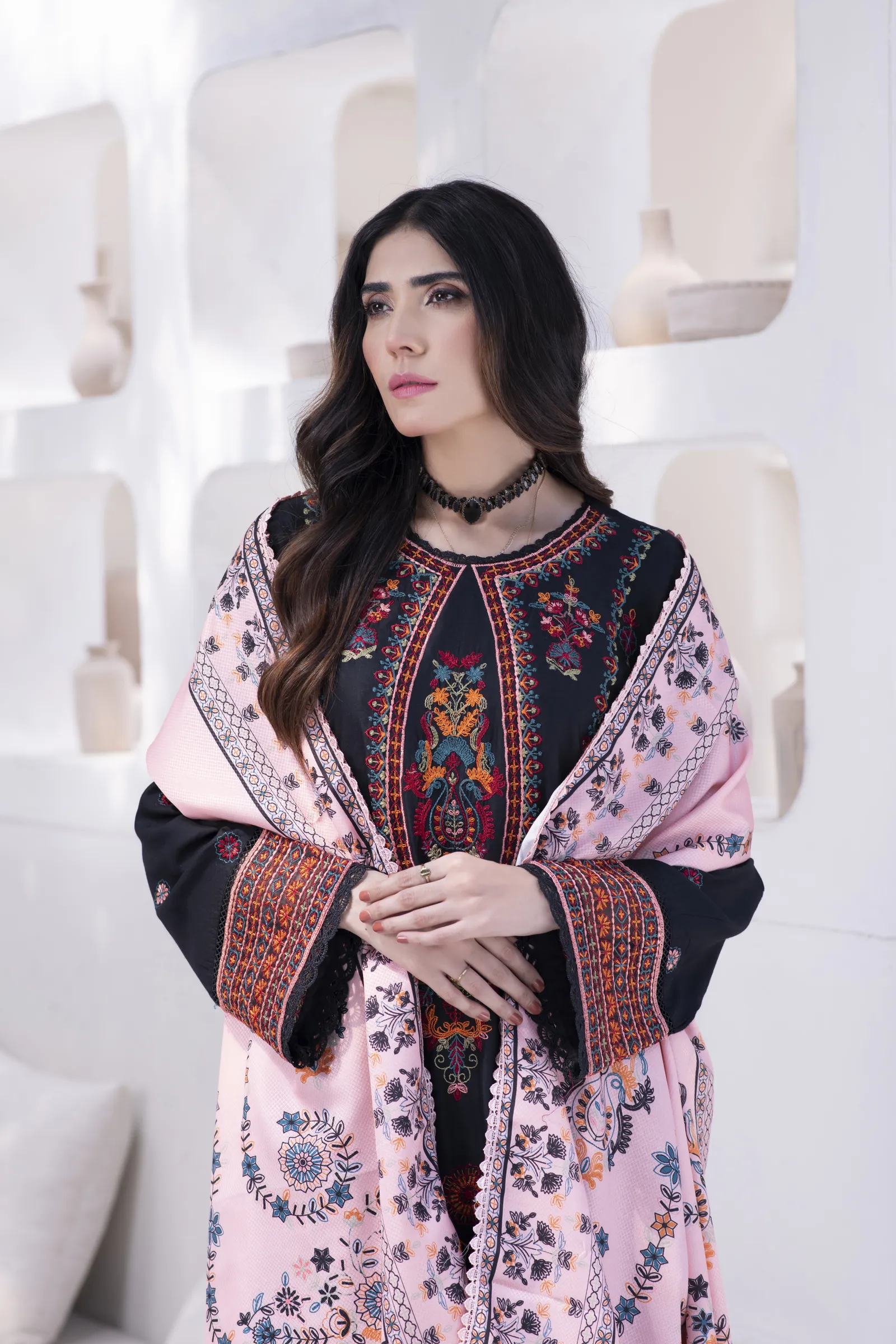 Home Winter Collection 3 Piece Lillen Suit – Embroidered with Shawl (Stitched)