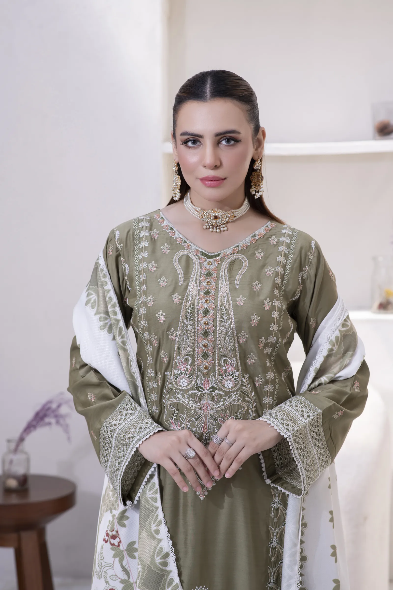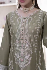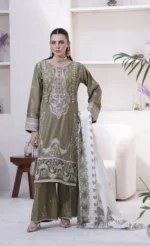 3 Piece Lillen Suit – Embroidered with Shawl (Stitched)
